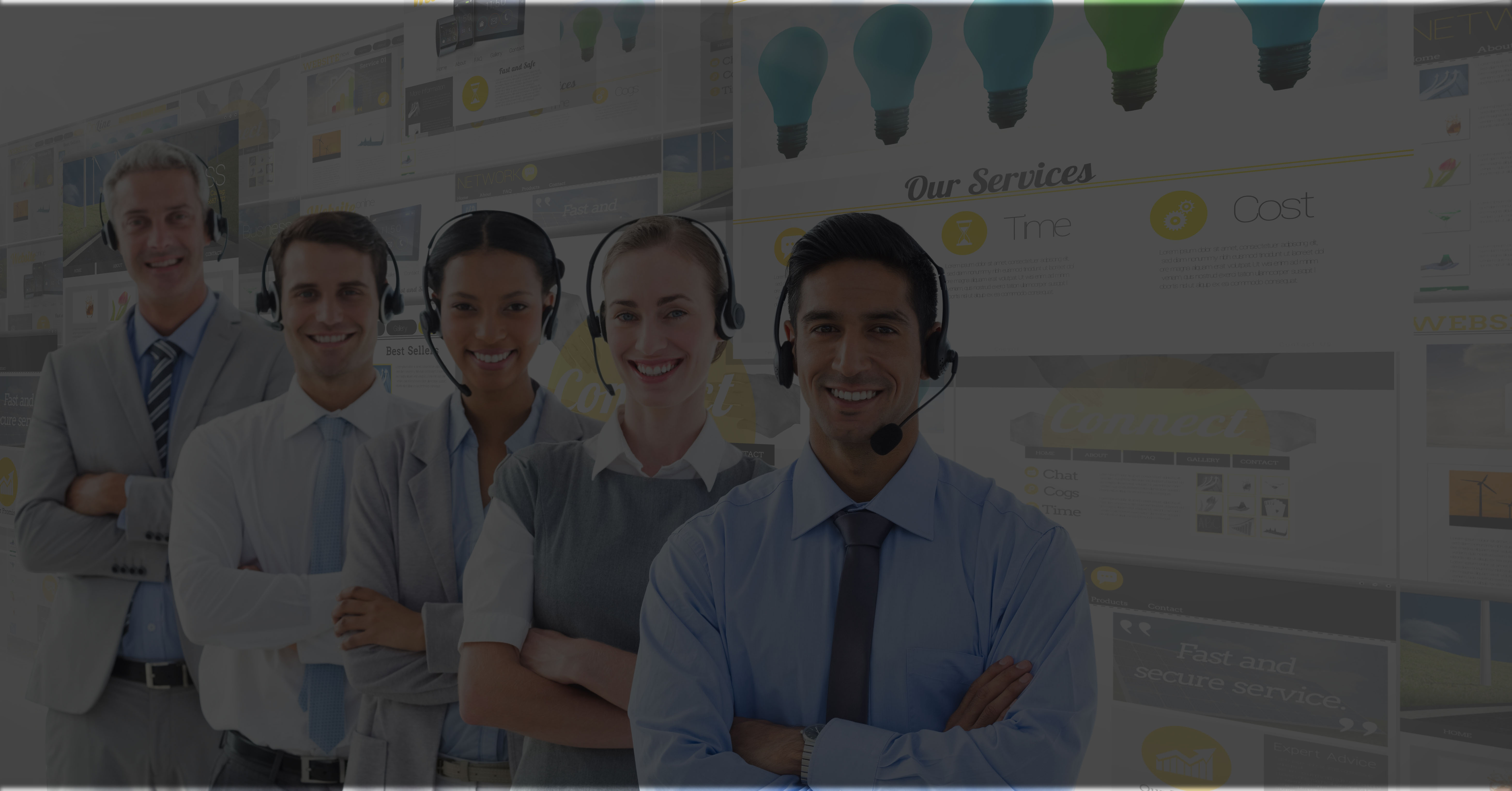 Attachment: Portrait of call center executives in headset standing with arms crossed